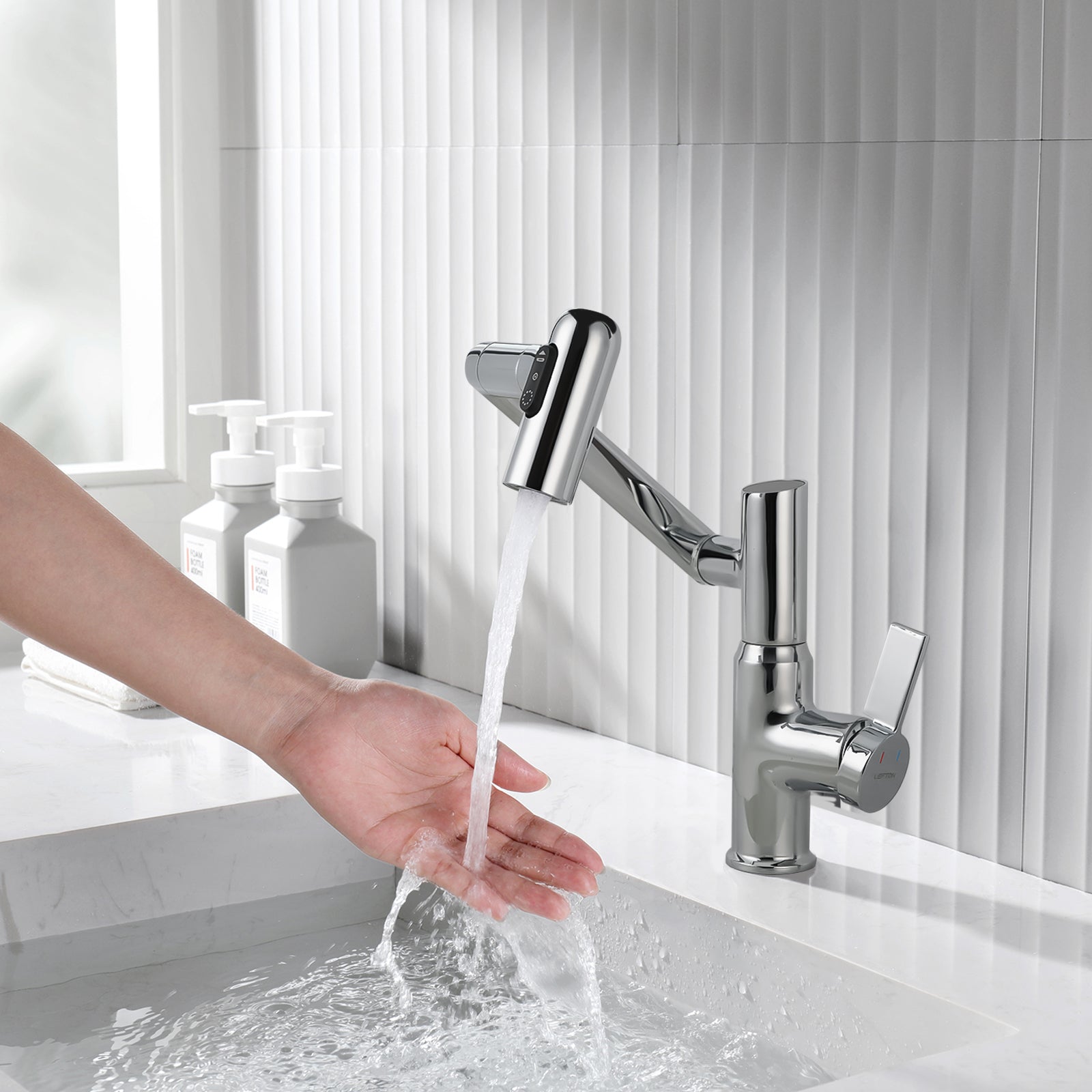 The Metora basin faucet BF2204 adopts an intelligent digital display design, and the high-definition digital screen displays the water temperature in real-time, no electricity or batteries required. Say goodbye to the trouble of measuring the temperature with water. Single handle design offers effortless and precise control over the hot and cold water flow, simple in use and modern in look, available in eight color options.