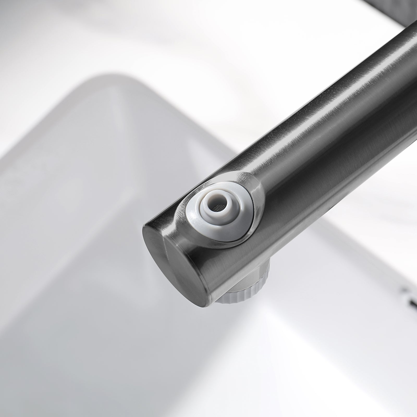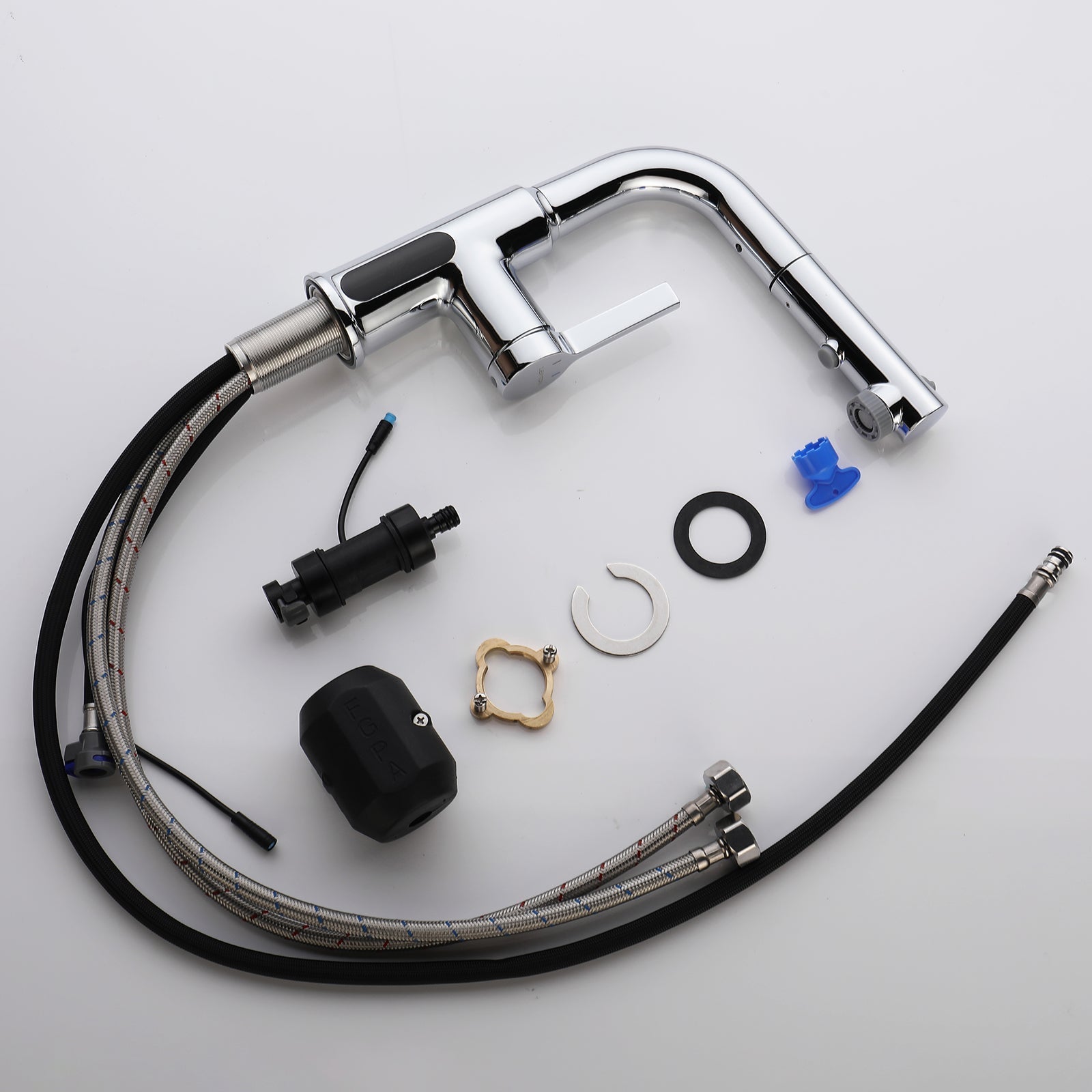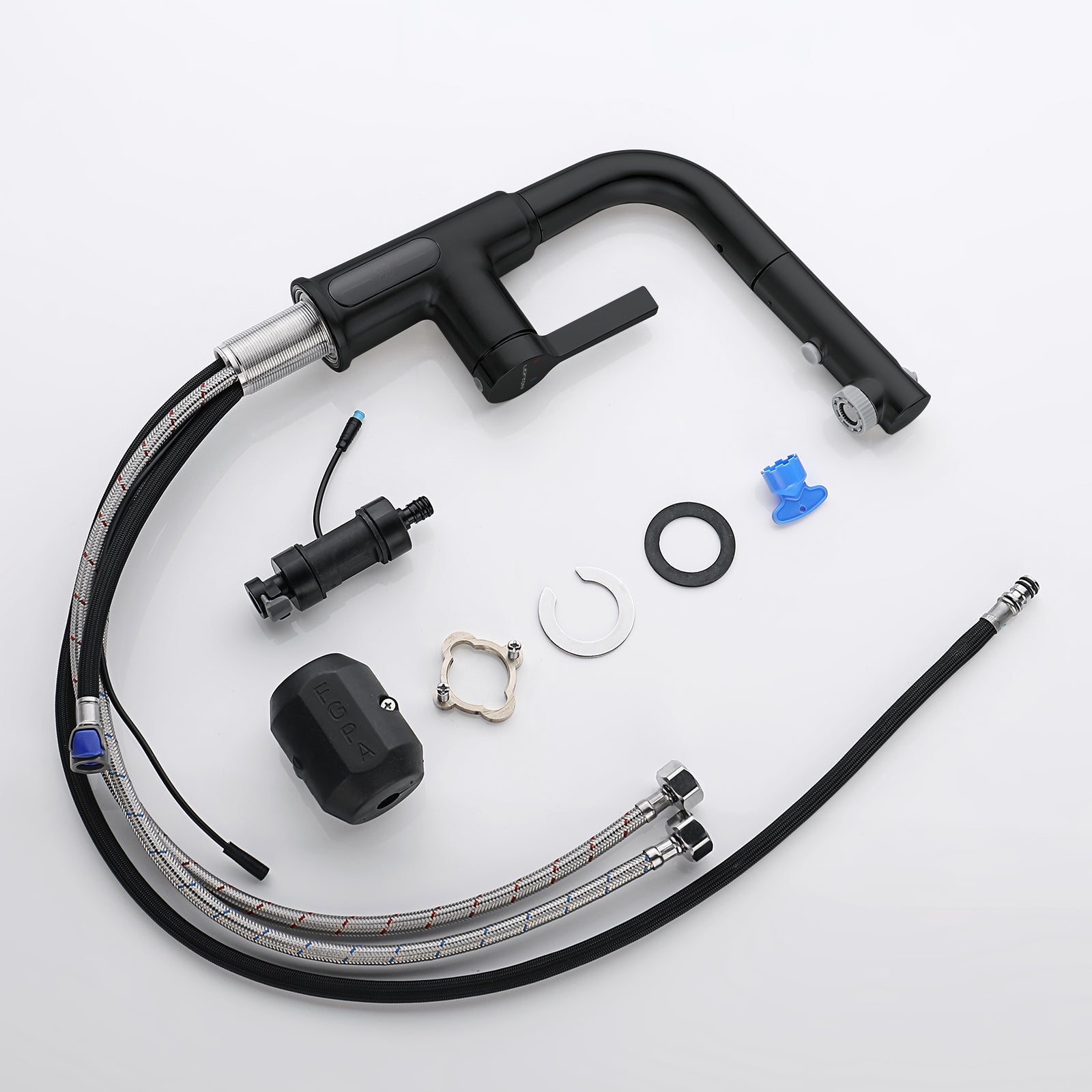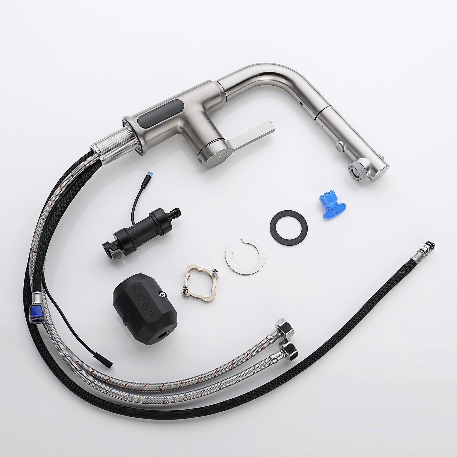 The Metora pull-out bathroom faucet, BF2501, boasts a streamlined, modern aesthetic that seamlessly integrates with contemporary bathroom decor. The LED digital display shows the water temperature in real time, ensuring a safer experience for everyone, and no electricity or batteries are required. This innovative faucet features a liftable design that allows you to adjust the height to your specific needs. Two water outlet modes and a mouthwash mode give a better water experience.