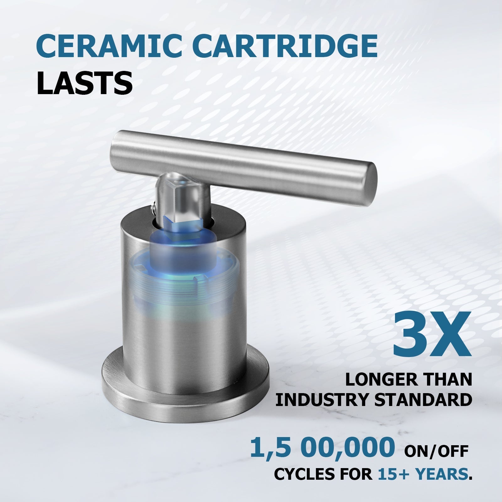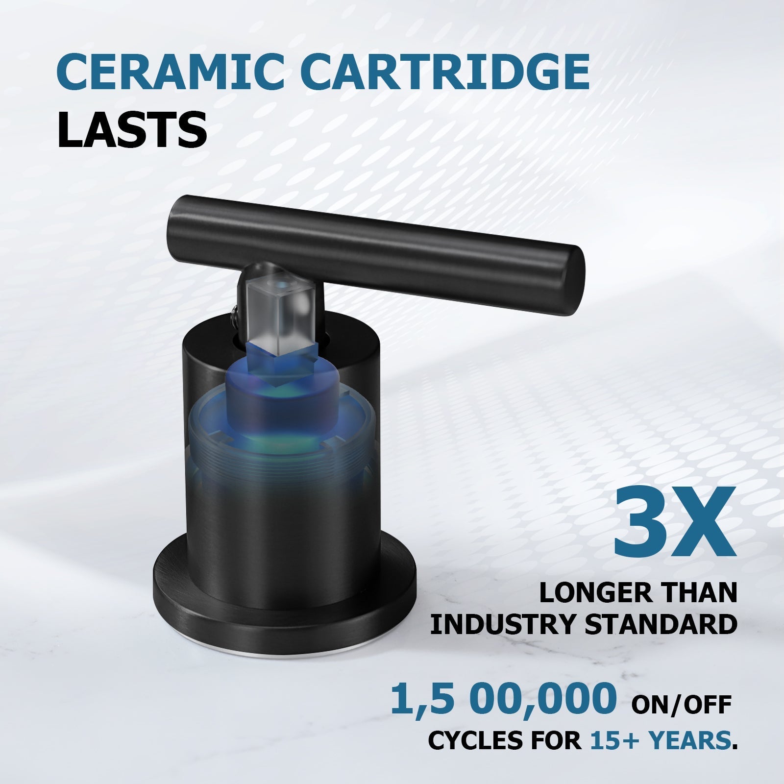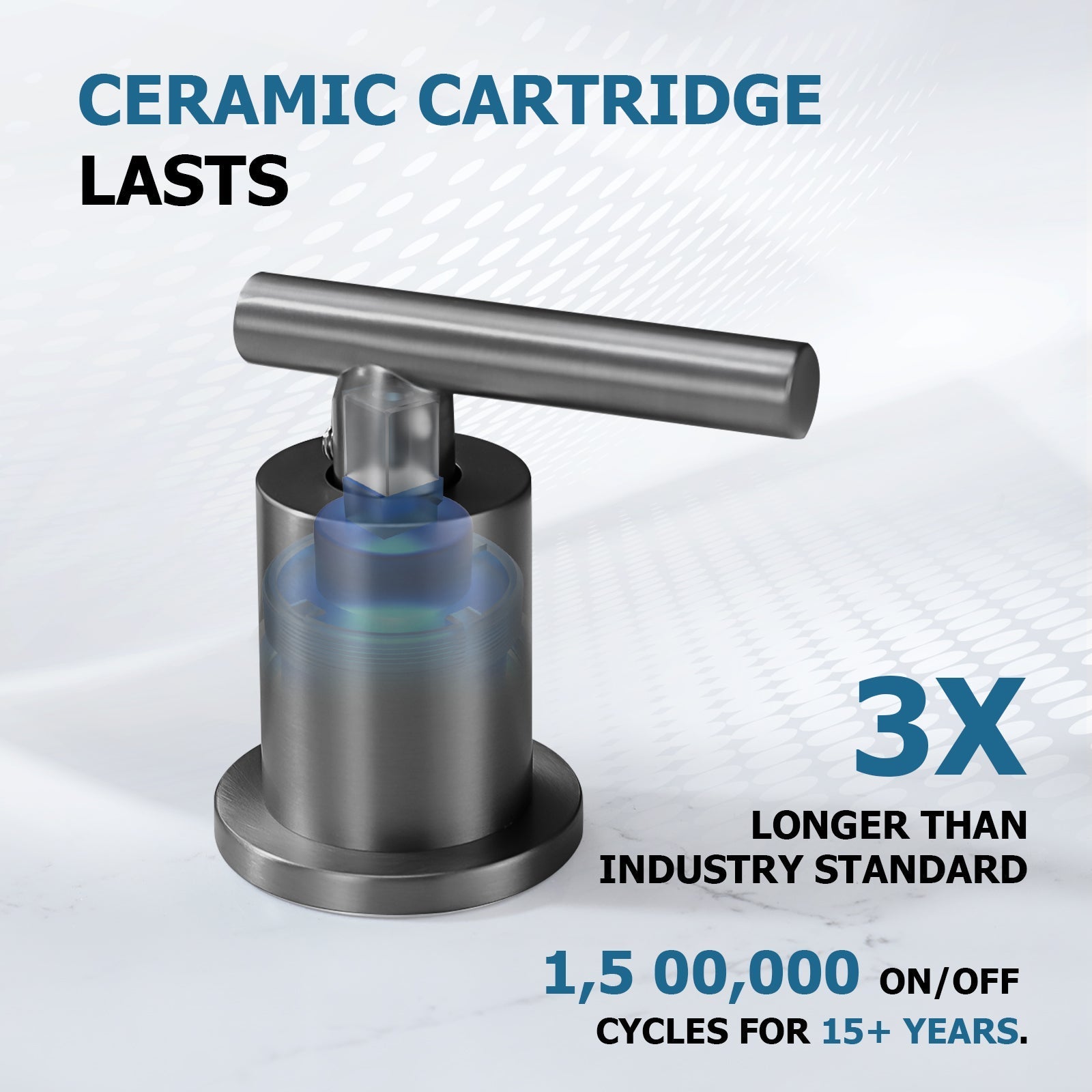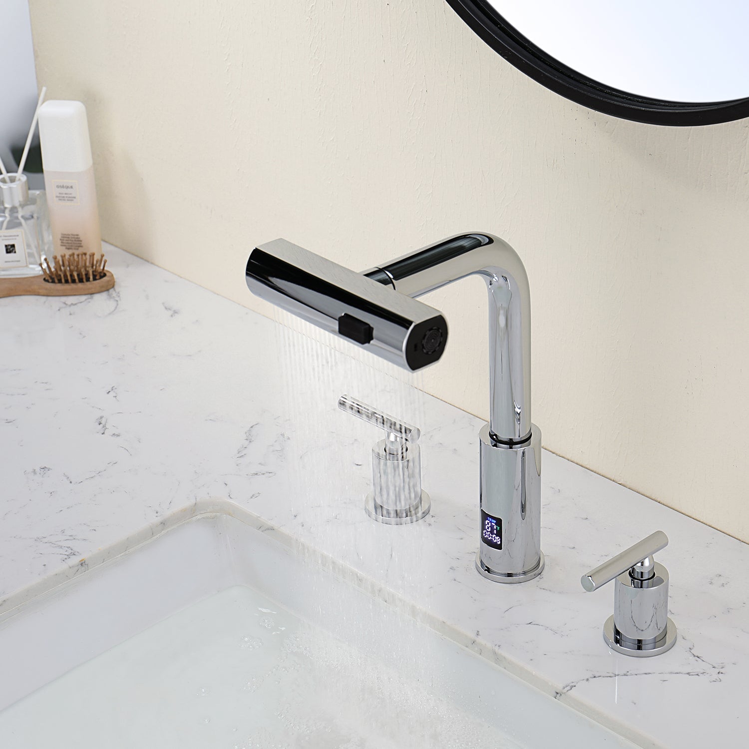 This 3-hole widespread bathroom faucet BFWS2401 is suitable for all bathroom sinks due to its adjustable distance that meets your requirements. The robust brass construction and premium finish ensure long-lasting use. And its 2-handle design enables easy control of hot and cold water volume and temperature separately. You can effortlessly switch the water flow from waterfall to stream by simply twisting the nozzle. Available in grey, brushed nickel, chrome, and matte black, this faucet complements any bathroom design.