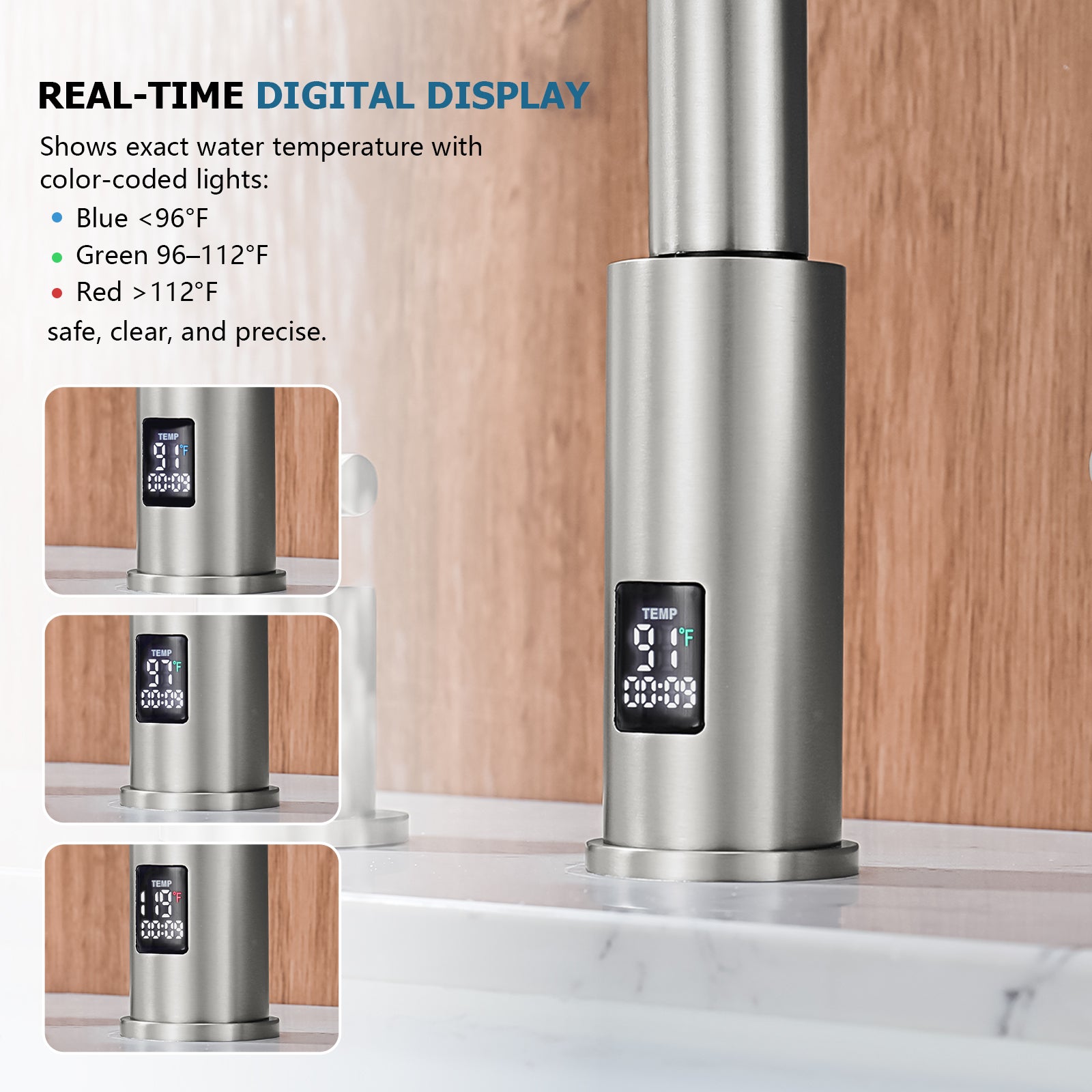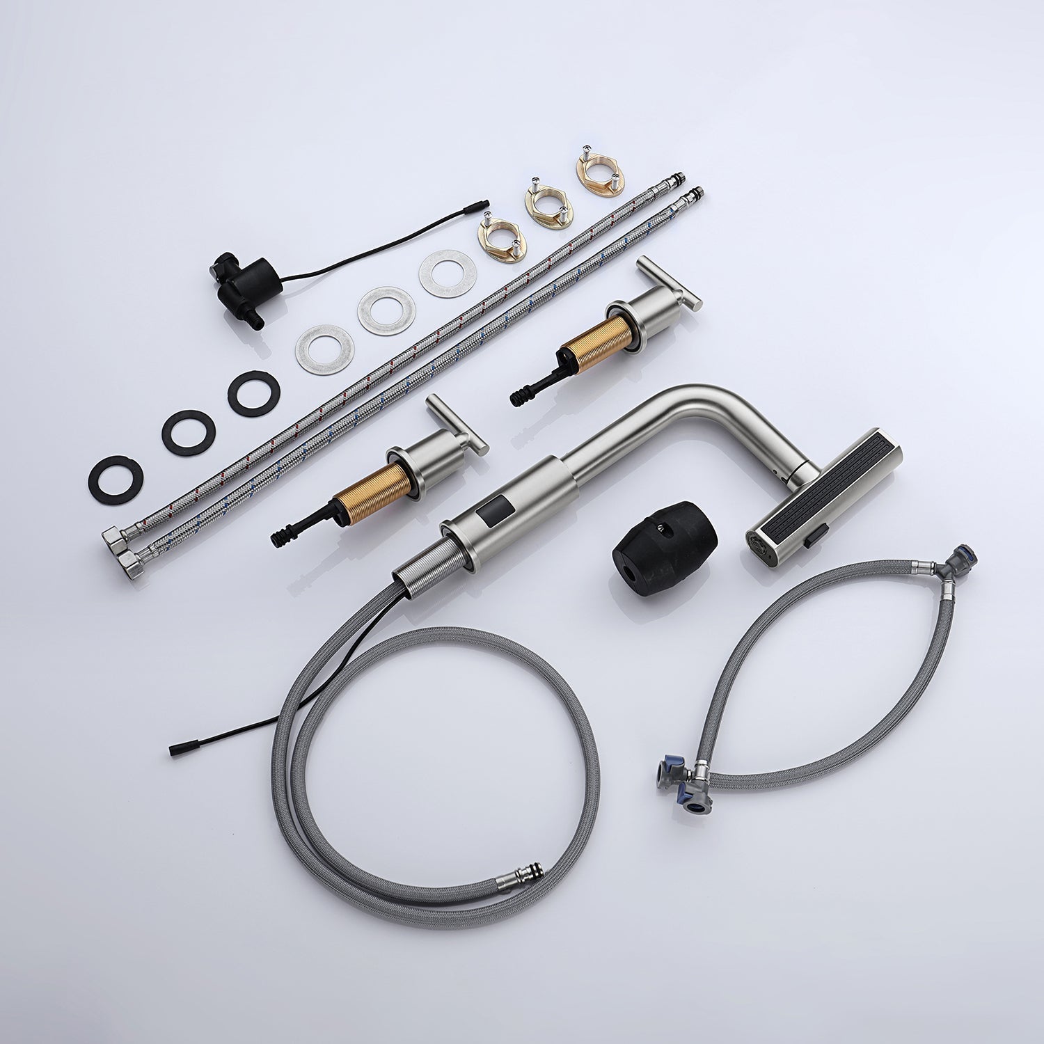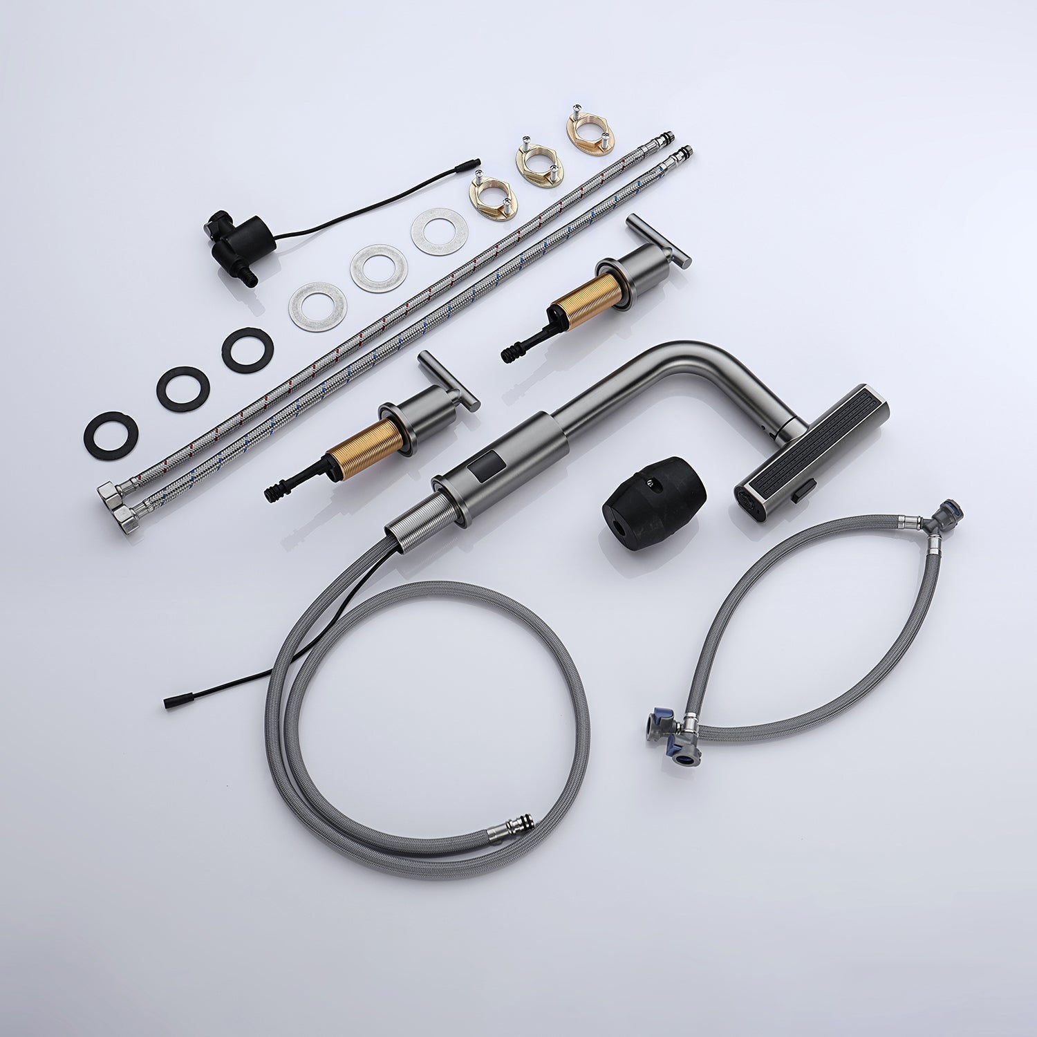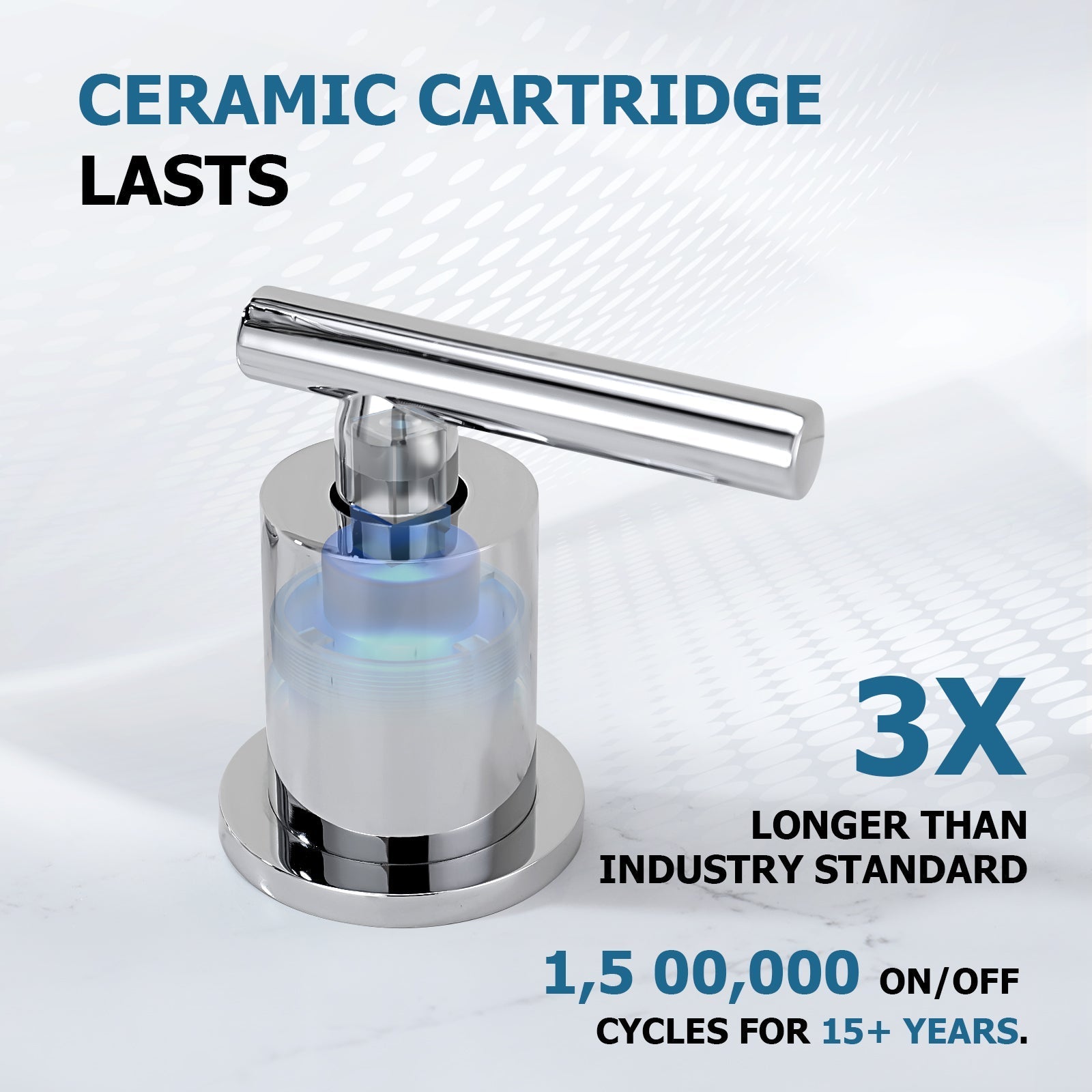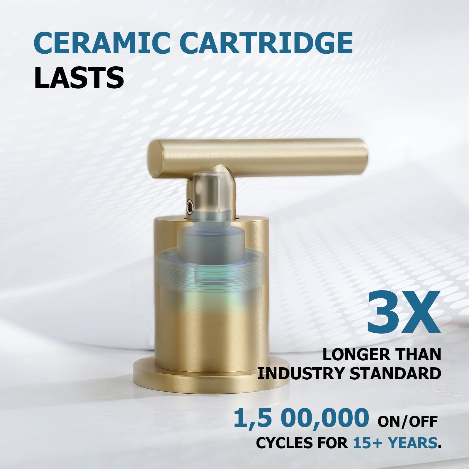 This 3-hole widespread bathroom faucet BFWS2401 is suitable for all bathroom sinks due to its adjustable distance that meets your requirements. The robust brass construction and premium finish ensure long-lasting use. And its 2-handle design enables easy control of hot and cold water volume and temperature separately. You can effortlessly switch the water flow from waterfall to stream by simply twisting the nozzle. Available in grey, brushed nickel, chrome, and matte black, this faucet complements any bathroom design.