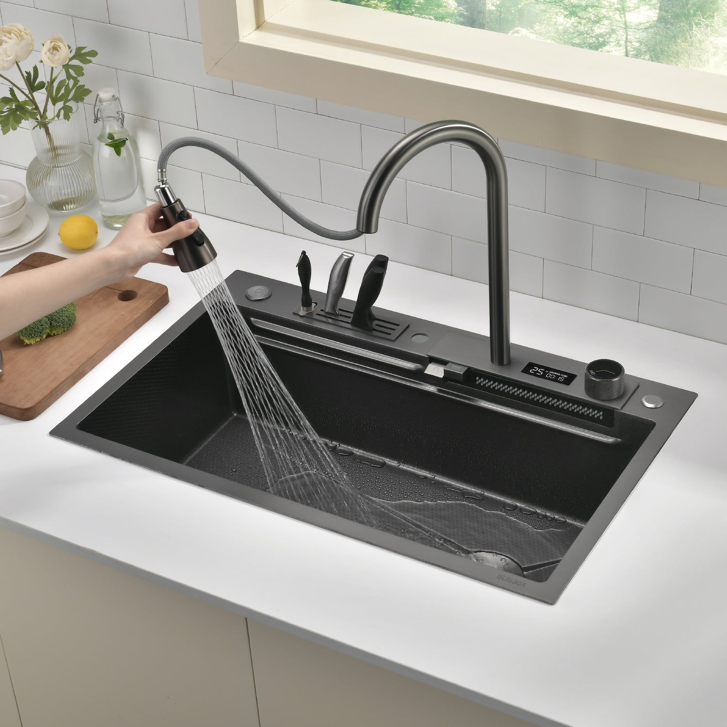 Metora Waterfall Workstation Kitchen Sink Set With Digital Temperature Display & Knife Holder-KS2204