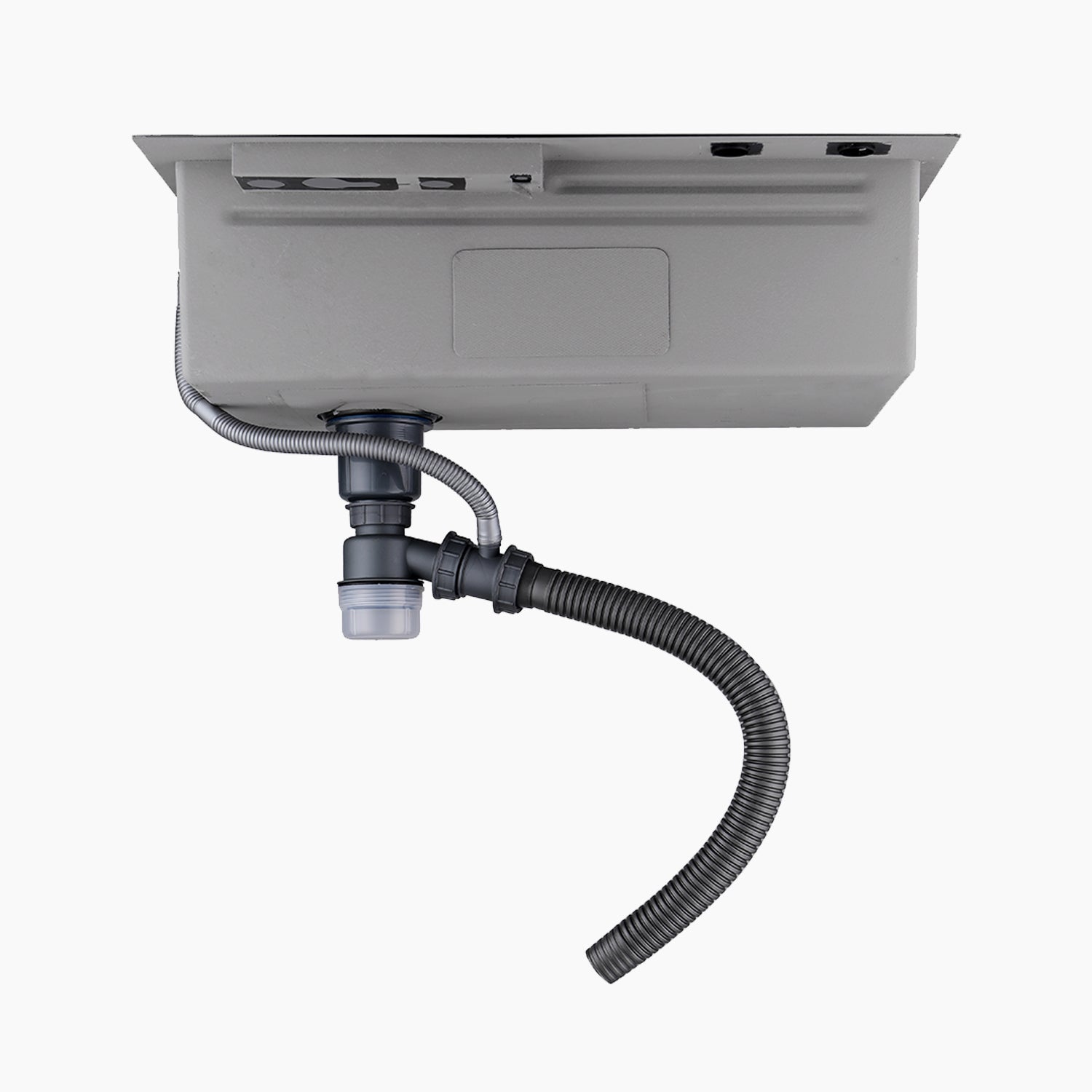 The Metora waterfall workstation kitchen sink KS2204 is designed with honeycomb embossed and nano-coated, fine-line brushed finish that makes it resistant to chipping, cracking or burning and appearance is more elegant. It can match glass rinser KFR2202 and soap dispenser KSD2201 (included in the package), which makes the sink more useful. The waterfall faucet can be switched between waterfall mode and faucet mode by 'Piano Button'. The digital temperature display (battery-free and shown on Celsius only) allows you do the cleaning at the optimum temperature. We offer a 5-year warranty on the sink set and its accessories.