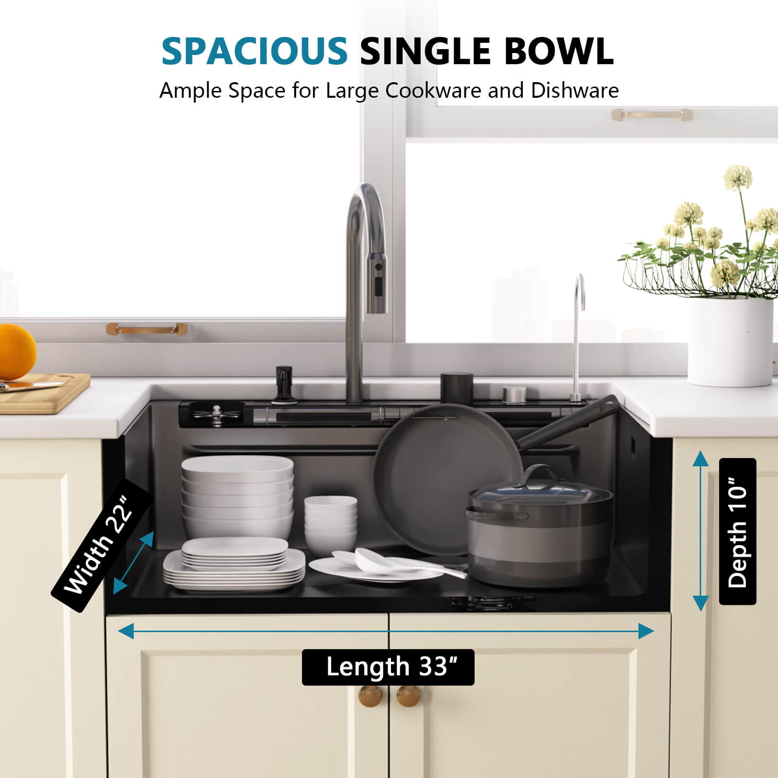 The Metora 2025 latest workstation kitchen sink model KS2207L-PRO 33x22'' is built from 16-gauge stainless steel with a nano coating for lasting durability. Designed for easy undermount installation, it saves valuable counter space while creating a sleek look. Metora 3/4 HP Continuous Garbage Disposal is designed for cooking enthusiasts to deal with tough food scraps and waste quietly and efficiently.