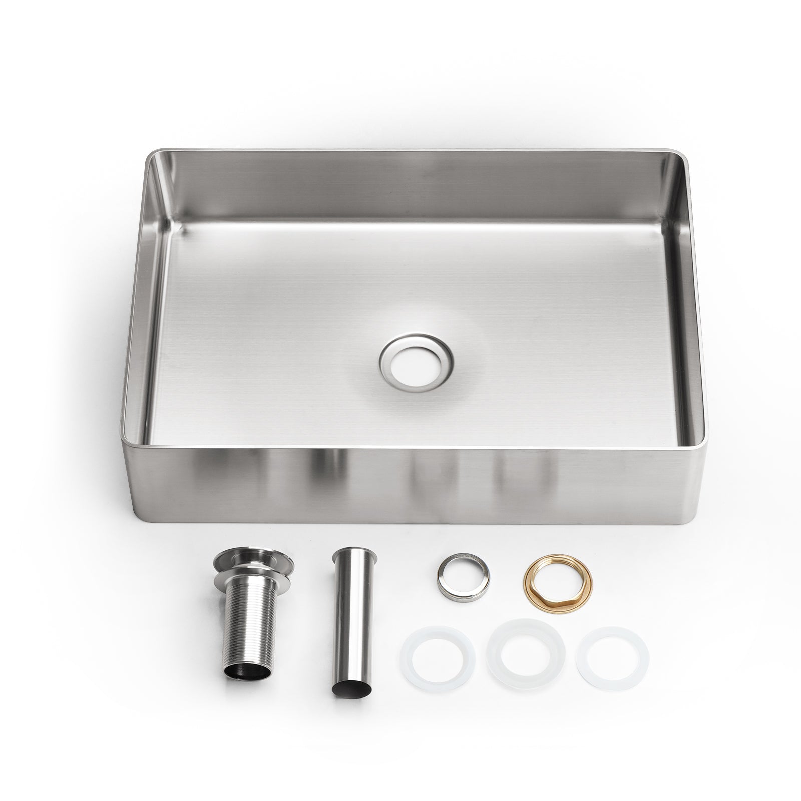 Made from stainless steel, the Metora Bathroom Vessel Sink BVS2402 offers exceptional durability, resistance to stains and scratches, and effortless maintenance. Featuring a streamlined rectangular design with a gently curved interior basin, this countertop sink provides a modern aesthetic. It has a pop-up drain stopper, providing seamless and effective drainage. We offer two classic colors: brushed dark gray and brushed nickel for you to choose from.